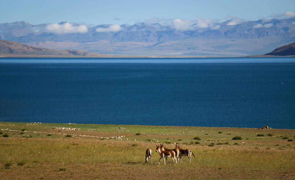藏野驢在拉昂錯(cuò)旁停留(8月13日攝)。新華社記者聶毅、曹檳攝影報(bào)道
