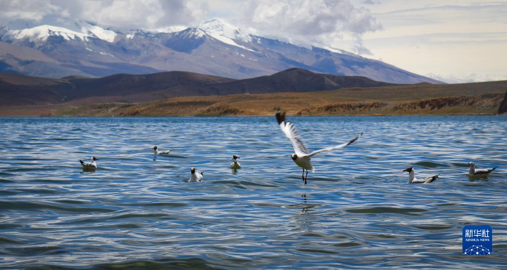 瑪旁雍錯水鳥成群(8月13日攝)。新華社記者 聶毅 攝