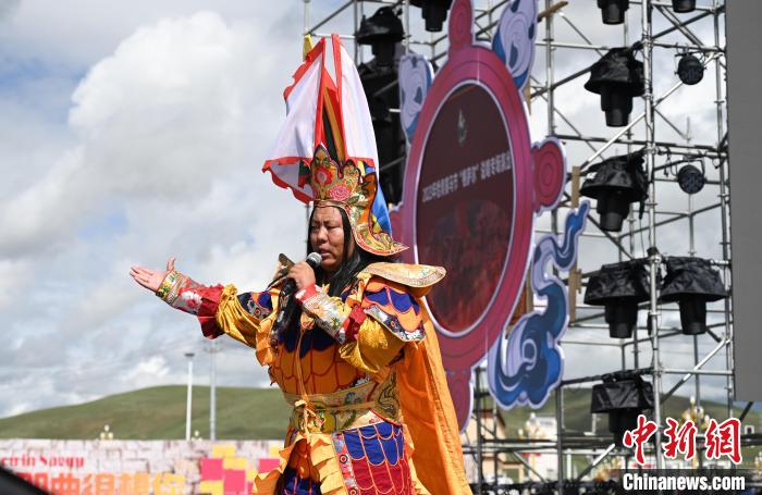 圖為嘎桑頓珠登臺(tái)表演。趙朗 攝
