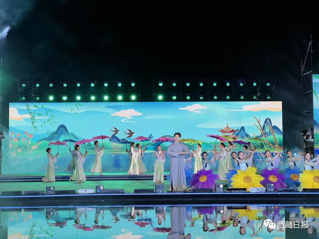 活動在文藝演出《雪頓新韻》中拉開序幕,絢麗的燈光、精彩的文藝演出,為觀眾帶來了一場精美的視覺盛宴。開幕式由序篇、上篇、下篇、尾聲四個章節(jié)組成,整場文藝演出融合歌曲、舞蹈、藏戲、京劇、昆曲、街舞等元素,并以半實(shí)景的舞臺藝術(shù)形式上演《百年雪頓》等節(jié)目,在線上線下呈現(xiàn)一臺傳統(tǒng)與現(xiàn)代交相輝映、傳承與創(chuàng)新和諧相融、歷史與未來一脈相承的文藝盛宴。