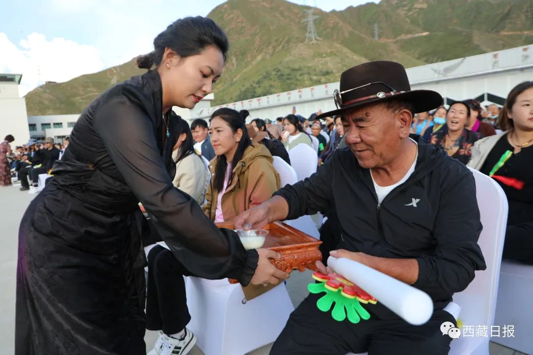與此同時,2000名受邀師生代表、單位干部職工代表以及社區(qū)(村居)群眾在分會場觀看開幕式演出。分會場的開幕式演出在藏裝秀表演中拉開序幕,除了有精彩多樣的演出節(jié)目外,分會場還有其樂融融的酸奶宴以及幸福感滿滿的集體鍋莊環(huán)節(jié)。