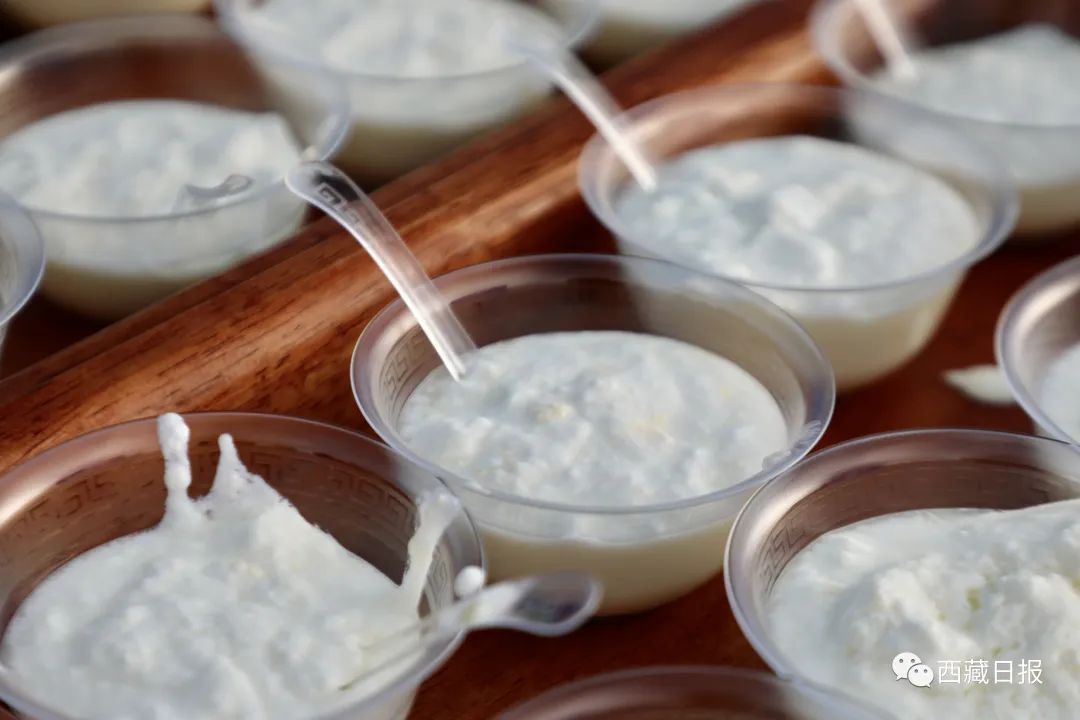 2023年拉薩雪頓節(jié)開幕式分會場上,為拉薩市民準(zhǔn)備的酸奶。記者 格桑倫珠 攝