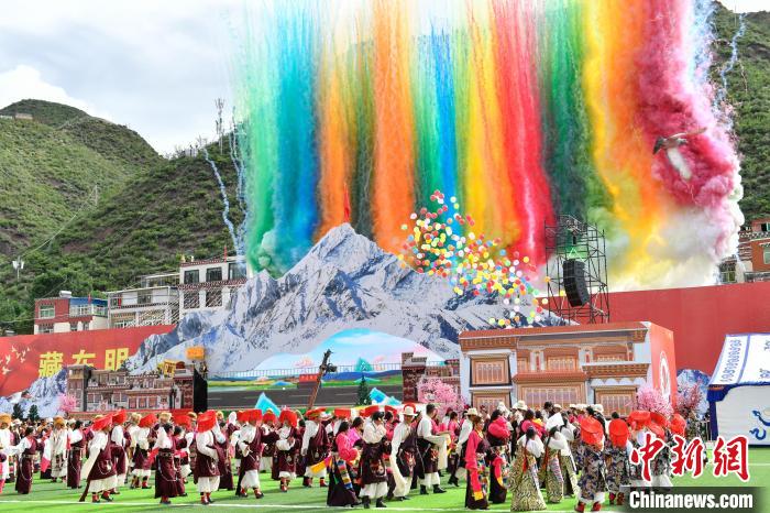 圖為開幕式上的文藝演出。貢嘎來松 攝
