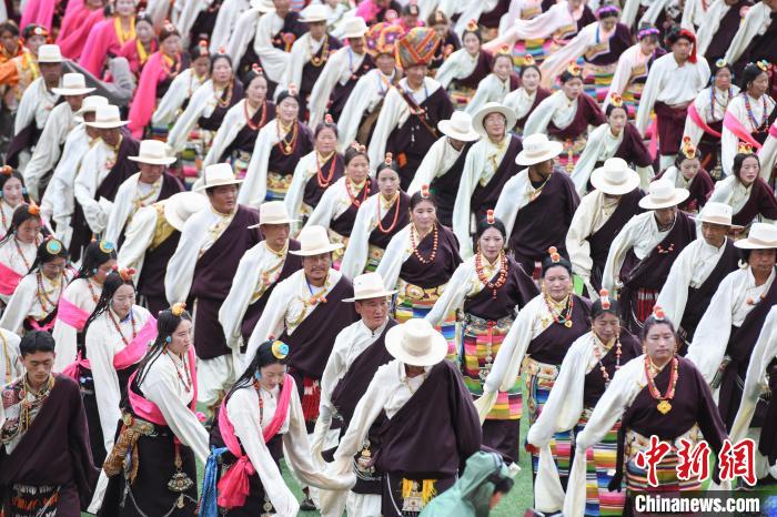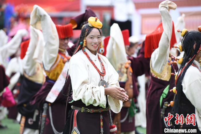 圖為開幕式上穿著節(jié)日盛裝的演員。貢嘎來松 攝