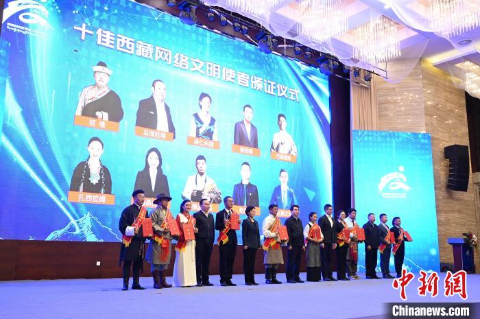 圖為活動表彰了“十佳西藏網(wǎng)絡(luò)文明使者”。趙朗攝