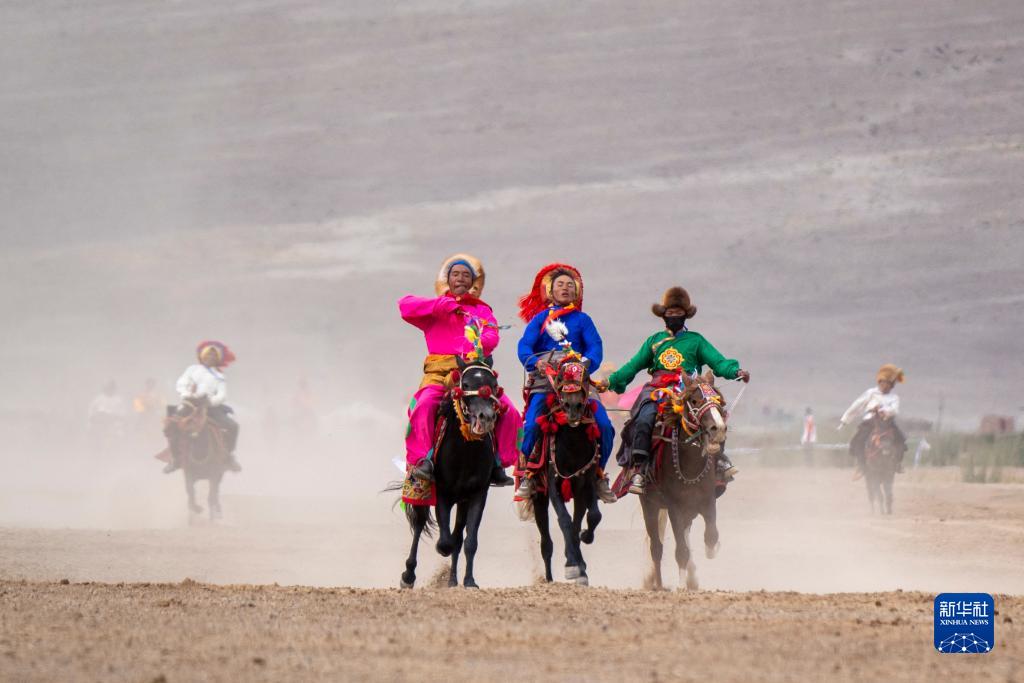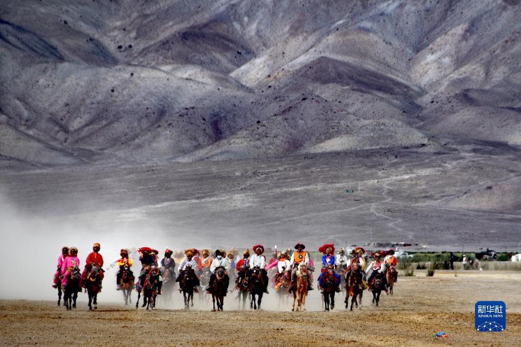 當(dāng)日,西藏阿里地區(qū)“噶爾恰欽”賽馬會在噶爾縣賽馬場開幕。來自阿里地區(qū)各縣的數(shù)十名騎手參加了馬術(shù)表演、走馬、跑馬等活動。