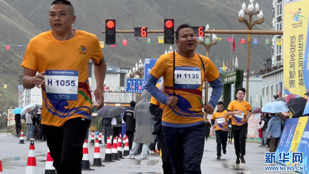 圖為2023雅礱文化旅游節(jié)環(huán)城馬拉松賽的參賽選手(8月26日攝)。新華網(wǎng) 柑丹鴦琦 攝