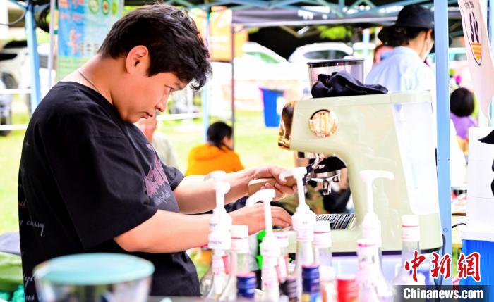 圖為咖啡走進(jìn)鄉(xiāng)間,咖啡師調(diào)制咖啡。西藏他喜咨詢供圖