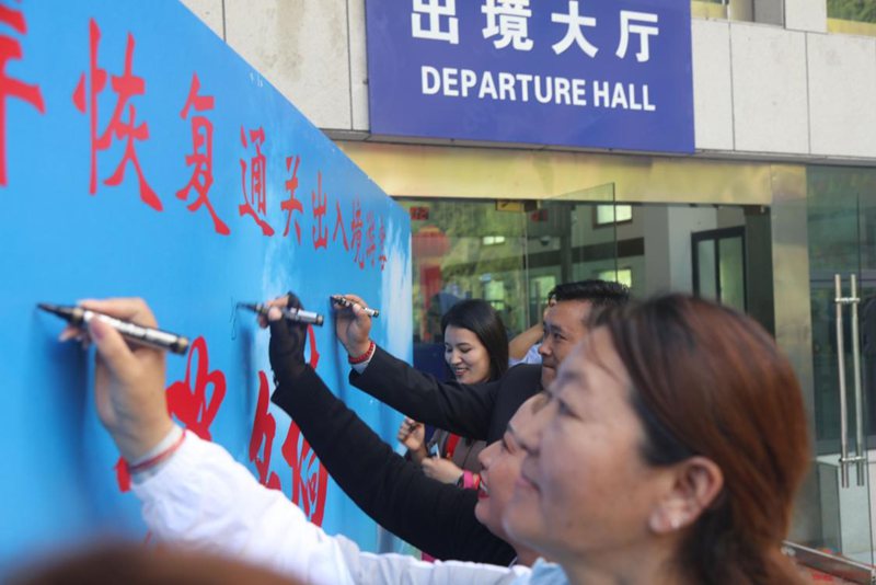 “心情很激動(dòng),現(xiàn)在可以從樟木口岸通關(guān)了,往來(lái)方便多了!”樟木鎮(zhèn)群眾索朗曲珍激動(dòng)地說(shuō)。同時(shí),她在國(guó)門簽名墻上寫下了“祝祖國(guó)繁榮昌盛”的祝福。
