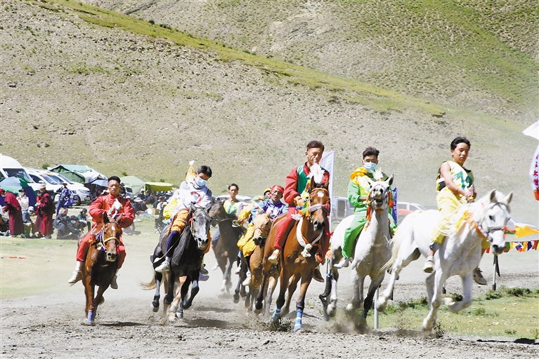 圖為騎手們?cè)谫悎?chǎng)上激烈角逐。記者 丹增平措 攝