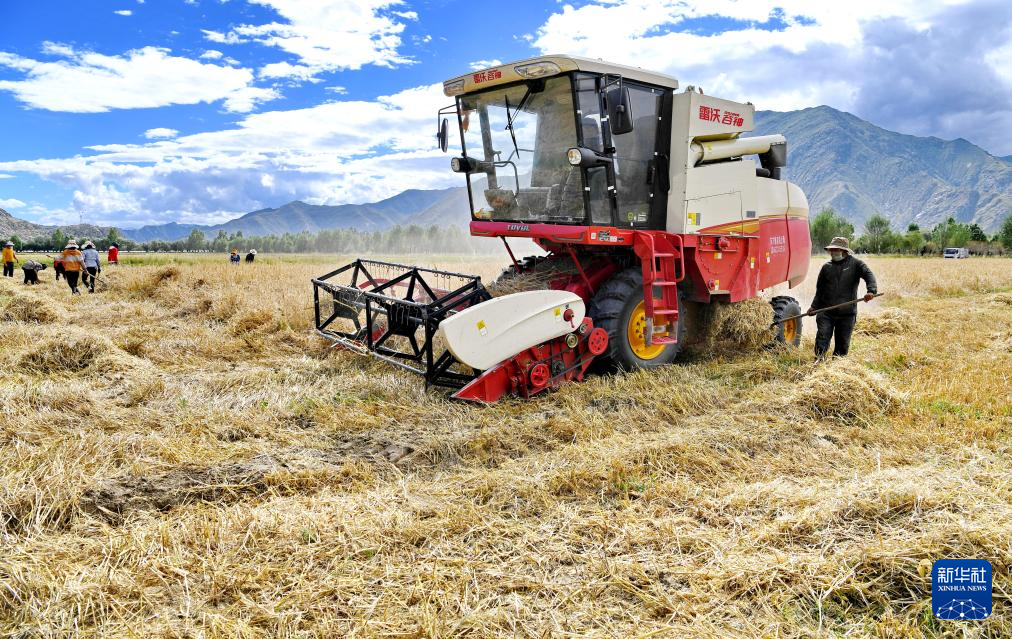 近日,西藏拉薩市曲水縣青稞成熟,人們忙著收割青稞,感受豐收的喜悅。