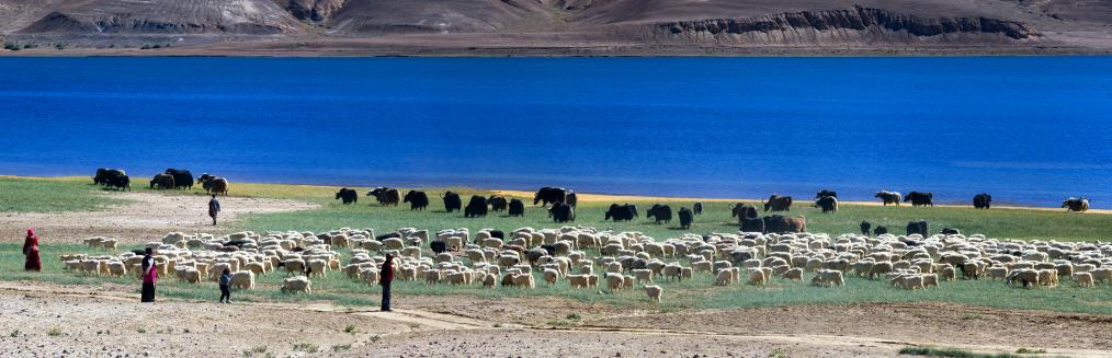 日土縣熱幫鄉(xiāng)的牧民拉巴,正趕著羊群到冬季牧場(chǎng)。“這些年,羊絨價(jià)格上來(lái)了,我們的羊現(xiàn)在可成寶貝了。”拉巴黝黑的臉上洋溢著笑容。