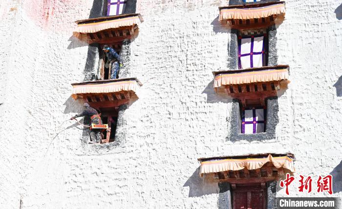 西藏布達拉宮18日迎來新一季粉刷,按照慣例,每季粉刷將在藏歷9月22日“神降節(jié)”前完成。