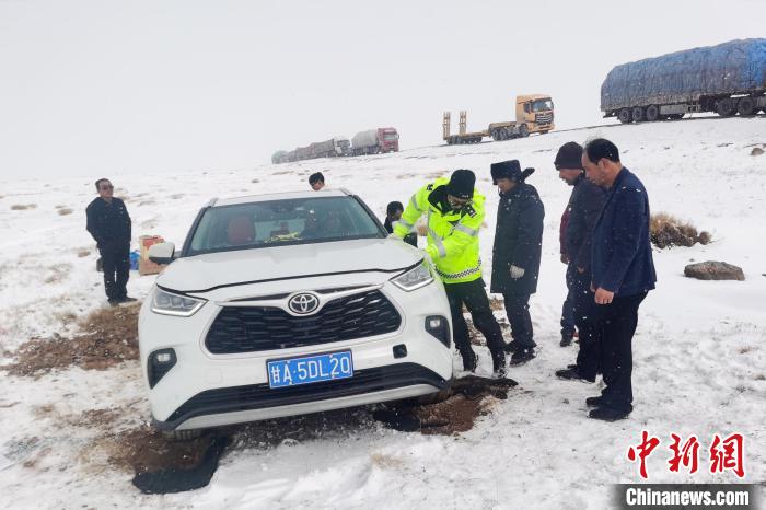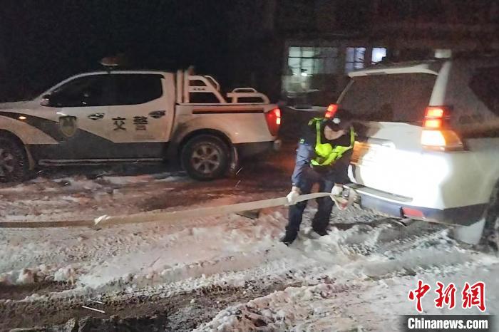 圖為西藏安多警方對被困車輛施救。安多縣公安局 供圖
