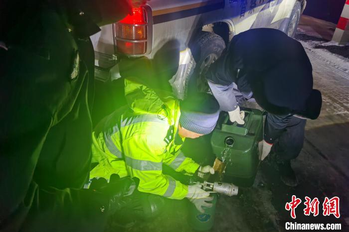 唐古拉山埡口路段入夜后氣溫極低,圖為降雪后安多警方對被困人員和車輛進行施救。安多縣公安局 供圖