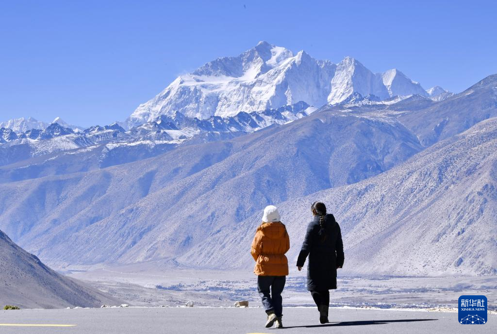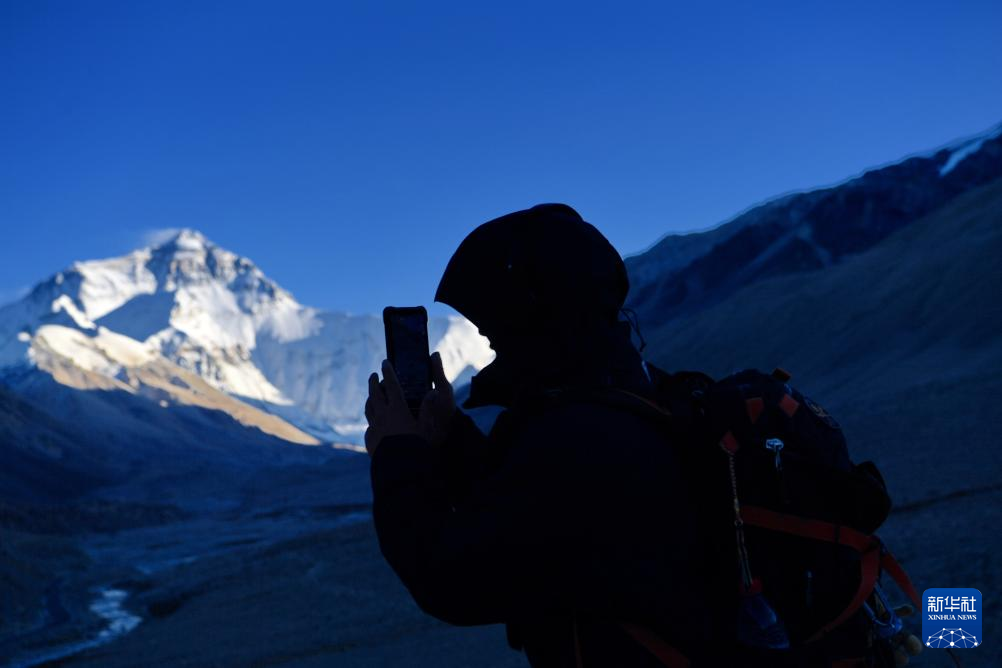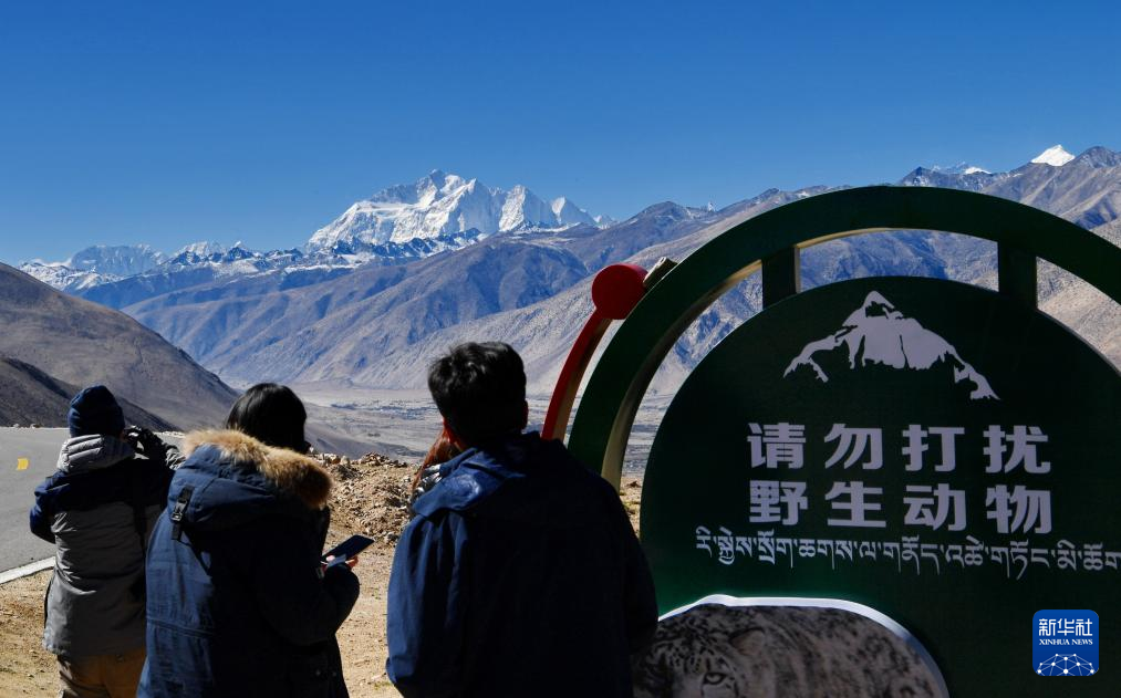 深秋,西藏日喀則市定日縣天高氣爽,游客前來觀賞世界最高峰——珠穆朗瑪峰。