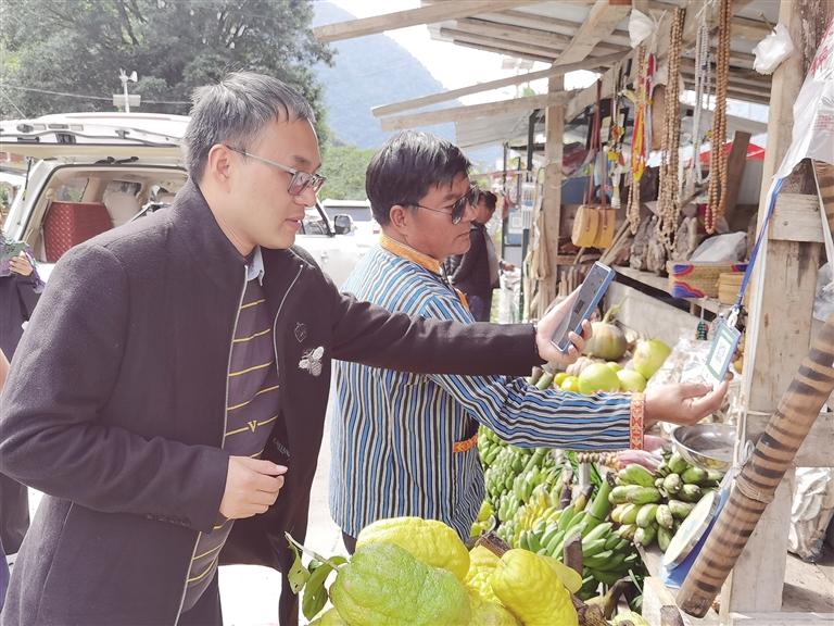 游客正在墨脫縣購(gòu)買當(dāng)?shù)氐乃?圖由自治區(qū)交通運(yùn)輸廳提供
