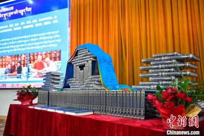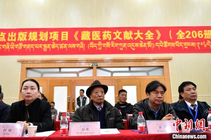 圖為《藏醫(yī)藥文獻(xiàn)大全》首發(fā)暨贈(zèng)書儀式現(xiàn)場(chǎng)。貢嘎來(lái)松 攝