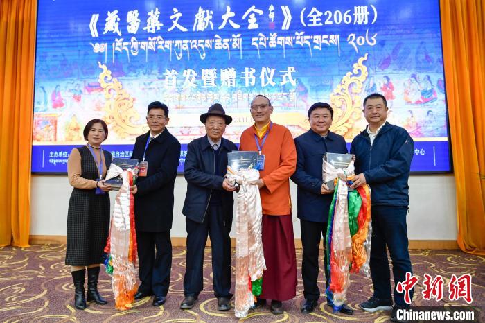 圖為《藏醫(yī)藥文獻(xiàn)大全》贈(zèng)書儀式現(xiàn)場(chǎng)。貢嘎來(lái)松 攝