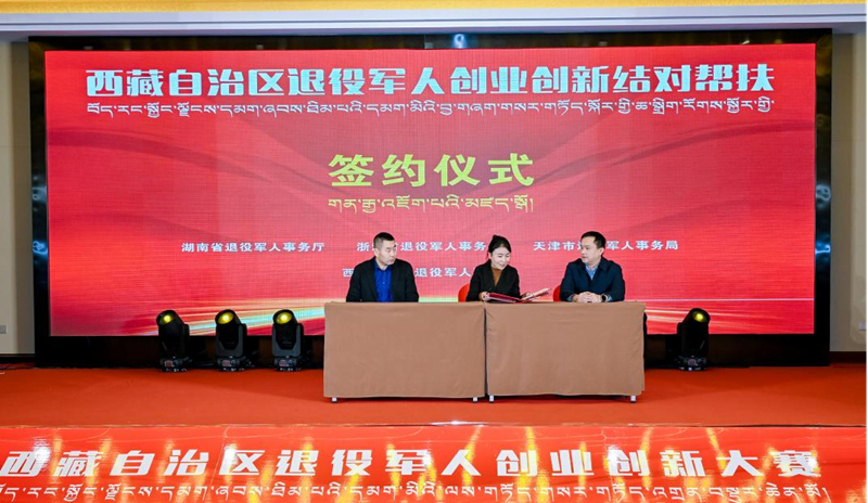 儀式上,西藏自治區(qū)退役軍人事務(wù)廳分別與湖南省退役軍人事務(wù)廳、浙江省退役軍人事務(wù)廳(線上同步簽約)、天津市退役軍人事務(wù)局簽署了結(jié)對幫扶協(xié)議,為助力西藏退役軍人創(chuàng)業(yè)創(chuàng)新,更好地服務(wù)經(jīng)濟(jì)社會(huì)發(fā)展奠定了基礎(chǔ)。