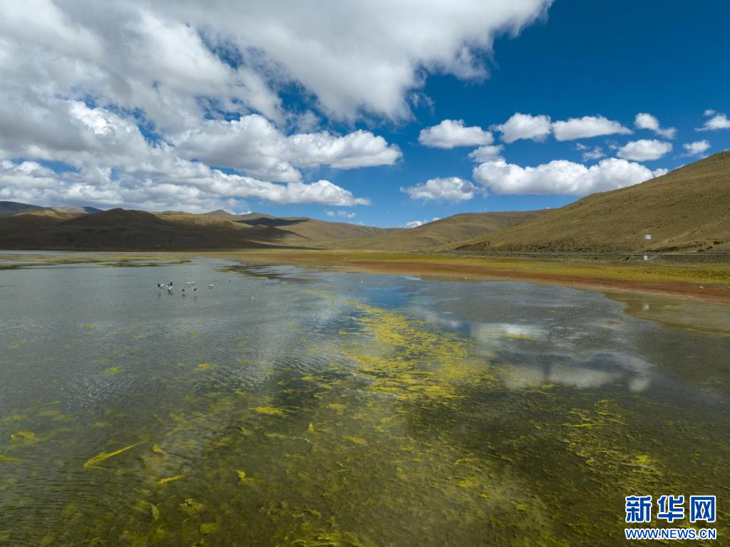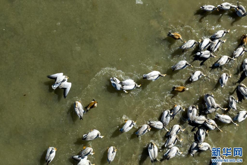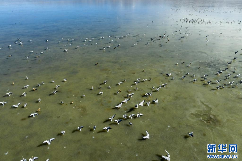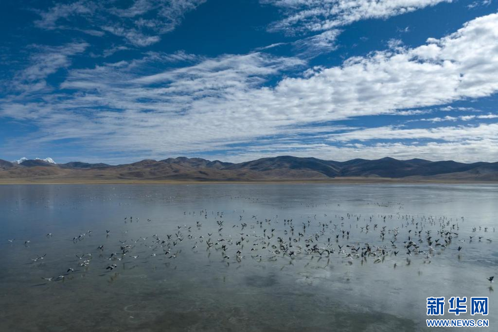 11月17日,在哲古湖拍攝的鳥群(無(wú)人機(jī)照片)。新華網(wǎng) 旦增努布 攝
