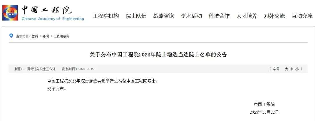 中國工程院網(wǎng)站 截圖