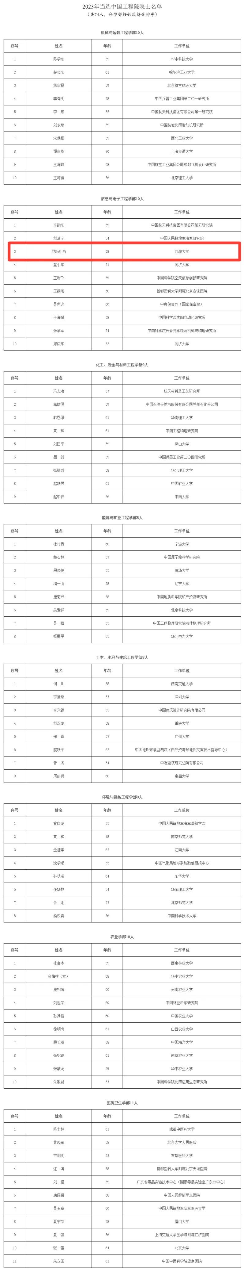 中國工程院公布了2023年院士增選當選院士名單