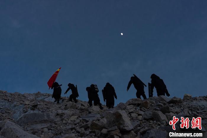 圖為普瑪江塘邊境派出所民警在海拔5600米的崗布冰川噴涂中國。郭遠敬 攝