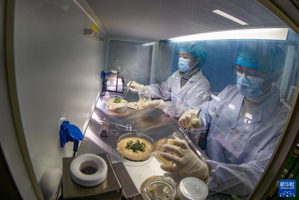 科研人員在進(jìn)行植物組織培養(yǎng)和接種工作(11月30日攝)。新華社記者 姜帆 攝