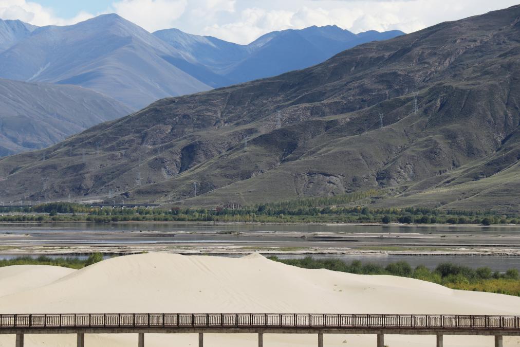 這是雅魯藏布江河谷山南段的沙丘和雅江防護林(9月15日攝)。新華社記者 黃耀漫 攝