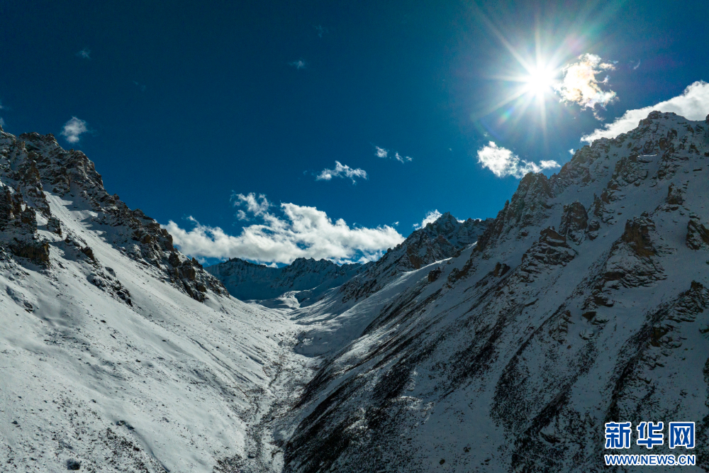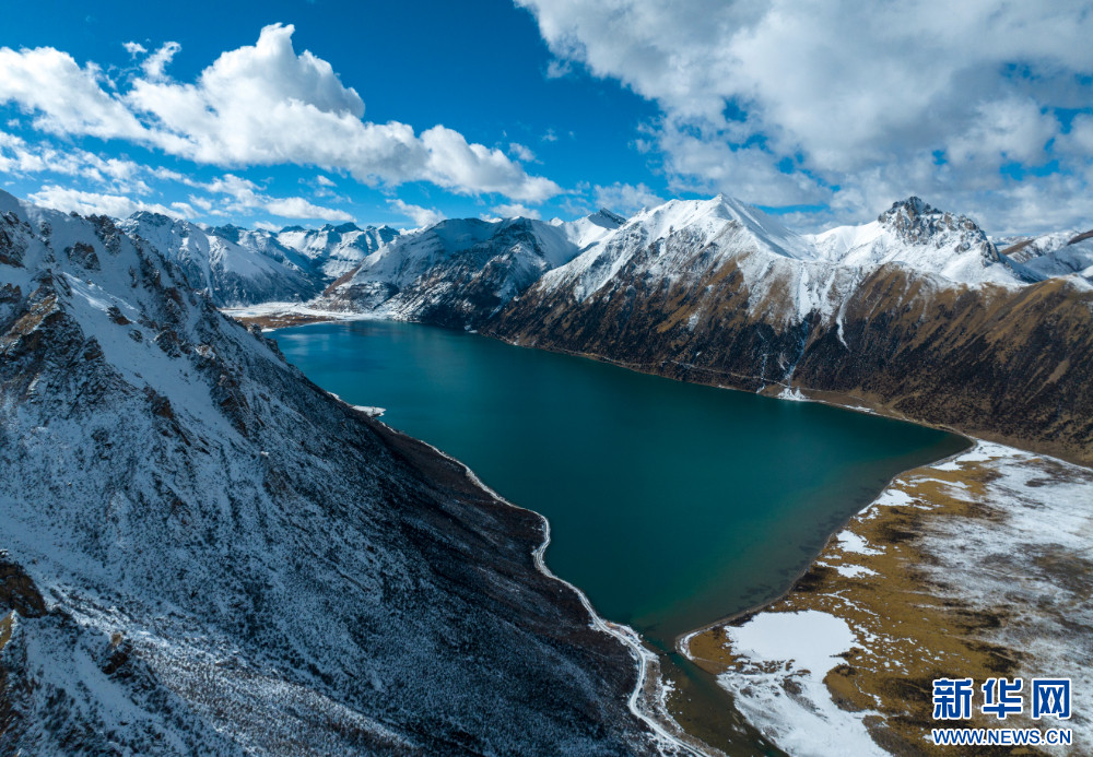 12月10日,從嘉乃玉錯(cuò)湖邊拍攝的雪山(無(wú)人機(jī)照片)。新華網(wǎng) 旦增努布 攝