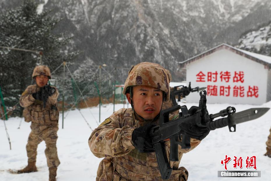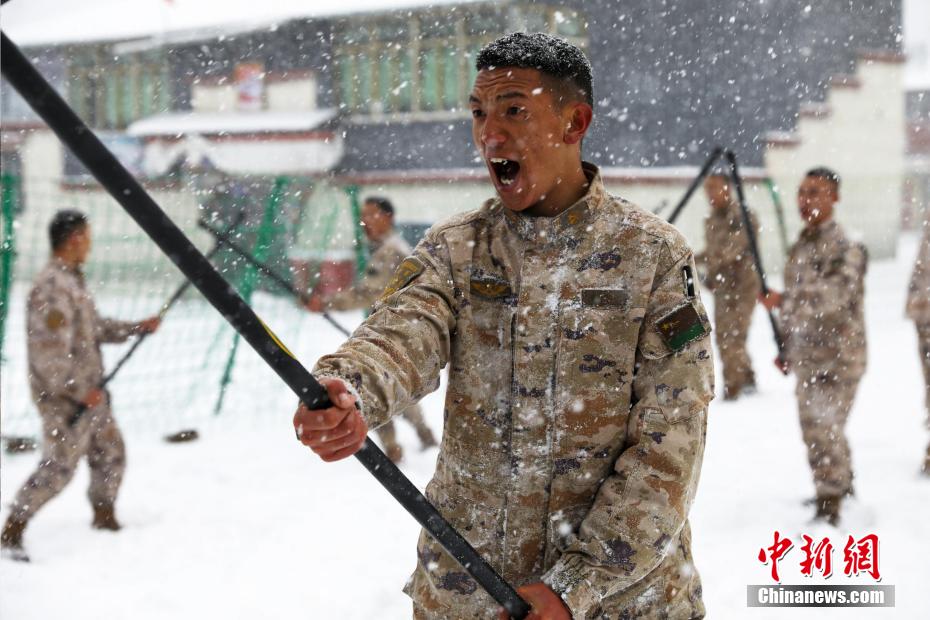 數(shù)九寒冬淬血性,雪地練兵正當時。近日,位于海拔四千多米的雪域高原連降大雪,氣溫驟降,西藏山南軍分區(qū)某邊防團充分利用嚴寒天氣組織官兵開展抗寒訓練。官兵們圍繞刺殺操、擒拿格斗、對抗戰(zhàn)法等課目展開訓練。