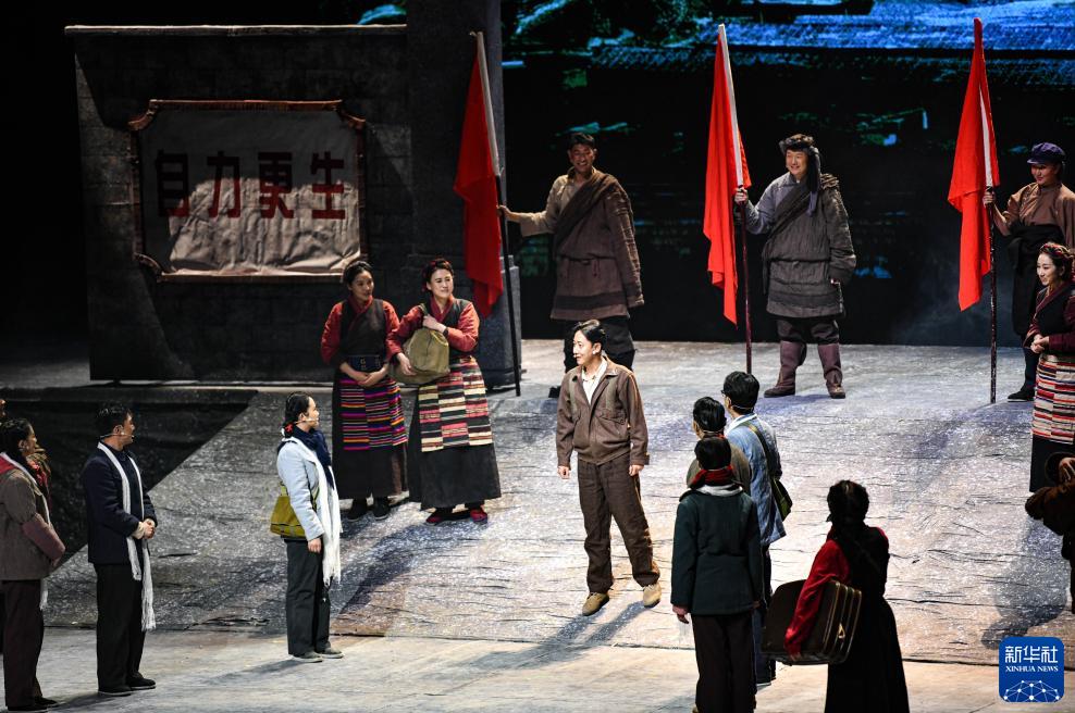 當日,話劇《老西藏》在西藏大劇院首演。該劇是西藏自治區(qū)文化廳打造的重點原創(chuàng)劇目,聚焦不同時期文化、水利、交通、教育、衛(wèi)生等各條戰(zhàn)線上的西藏建設(shè)者,講述他們奉獻青春年華的熱血故事。