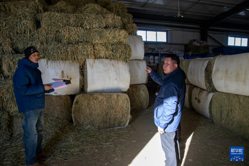 尼瑪縣副縣長姚鵬(右)和鄉(xiāng)農(nóng)牧專干索朗格桑在俄久鄉(xiāng)農(nóng)牧業(yè)防抗災(zāi)物資儲(chǔ)備庫里盤點(diǎn)物資庫存(12月18日攝)。新華社記者 劉文博 攝
