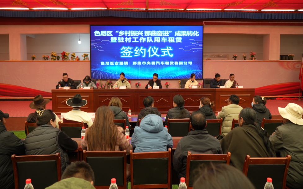 那曲市色尼區(qū)“鄉(xiāng)村振興 那曲奮進”成果轉(zhuǎn)化暨駐村工作隊用車租賃簽約儀式。