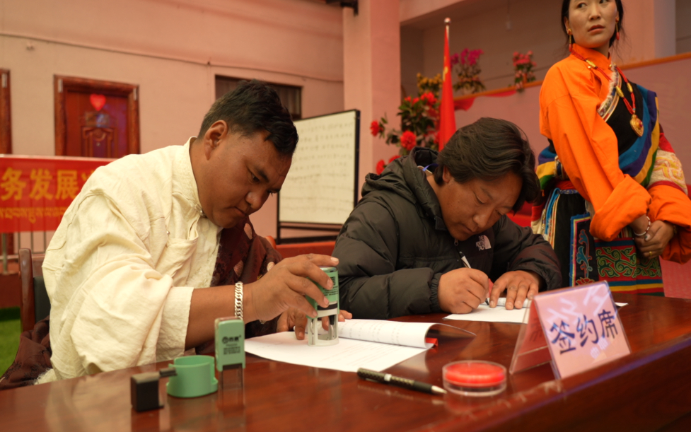 那曲市色尼區(qū)古露鎮(zhèn)央礱汽車租賃公司負責人與駕駛員簽訂安全協(xié)議。