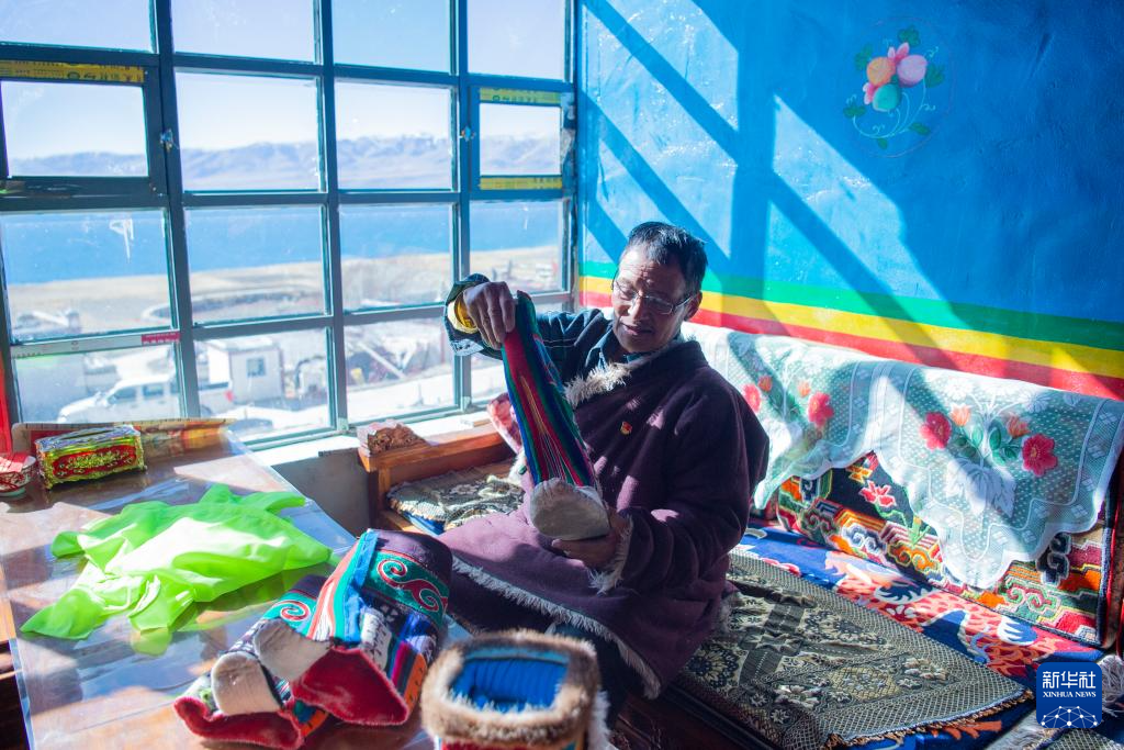 12月20日,古曲扎巴在家中免費幫村民縫制物品。新華社發(fā)(旦增努布 攝)