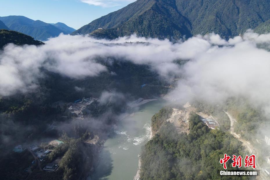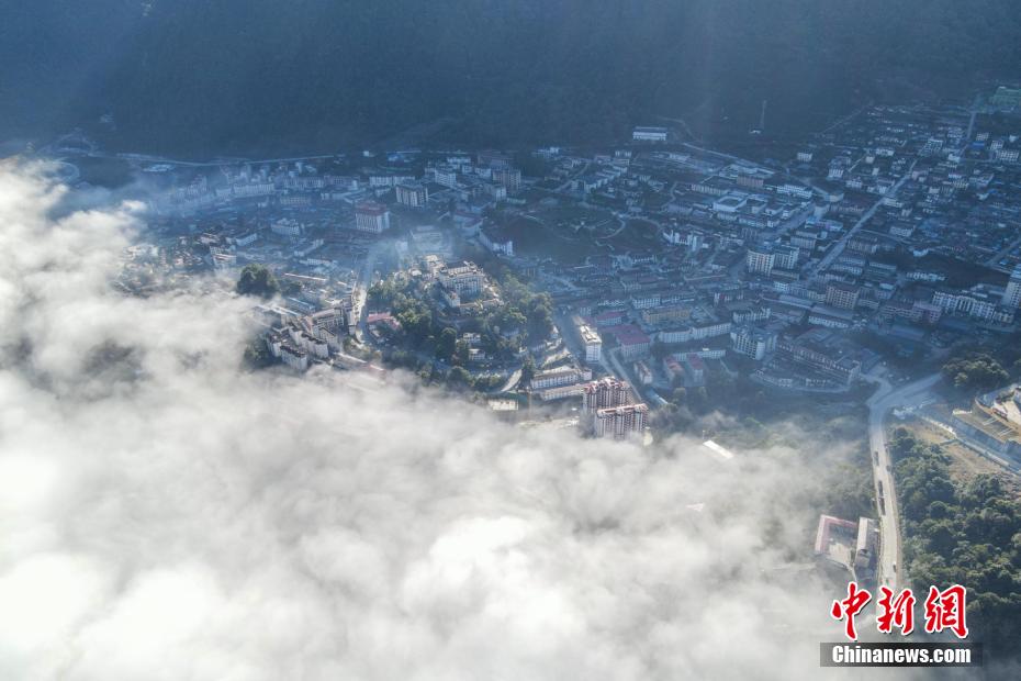 12月22日,雅魯藏布江云海與墨脫縣城。(無人機畫面)