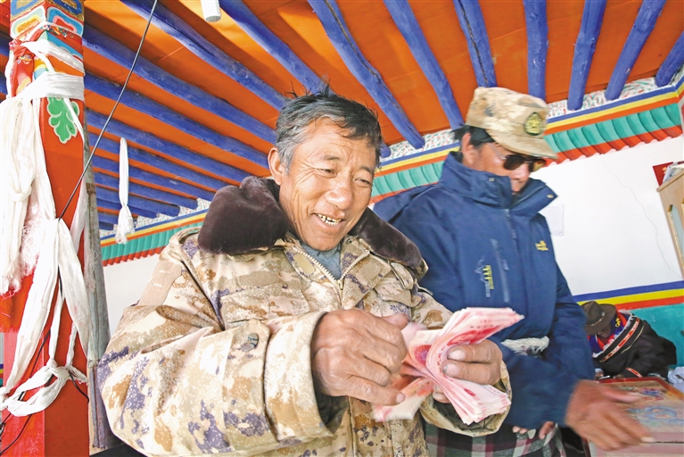 近年來,日土縣多瑪鄉(xiāng)黨委、政府立足“一羊一樹一道一湖”資源,不斷推動產(chǎn)業(yè)結(jié)構(gòu)和運營模式改革,提升村集體經(jīng)濟(jì)產(chǎn)業(yè)發(fā)展活力,有效增加農(nóng)牧民群眾收入。圖為多瑪鄉(xiāng)合作社社員喜領(lǐng)分紅。通訊員 嘎瑪次仁 攝