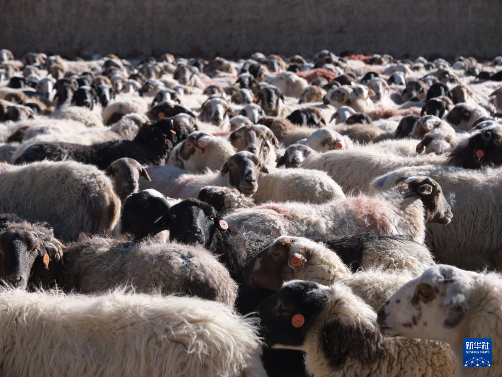 隨著標(biāo)準(zhǔn)化的推行,如今貢巴村的羊羔都打上了耳標(biāo)(12月20日攝)。新華社發(fā) 黃智琪 攝