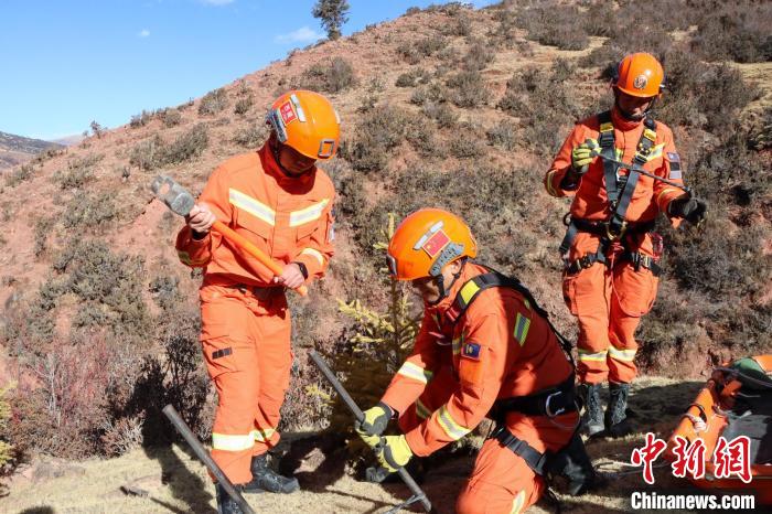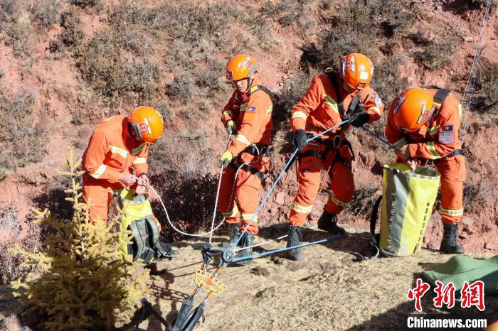 西藏芒康縣平均海拔4300多米,橫斷山脈由北向南縱貫縣境。因特殊地形導(dǎo)致山高谷深、川流密布,加之海拔較高,給各類救援帶來挑戰(zhàn)。此次訓(xùn)練模擬村民失足掉落峽谷致傷無法移動(dòng),要求救援人員利用繩索在峽谷兩岸架設(shè)救援通道,將被困村民轉(zhuǎn)移至安全地帶。