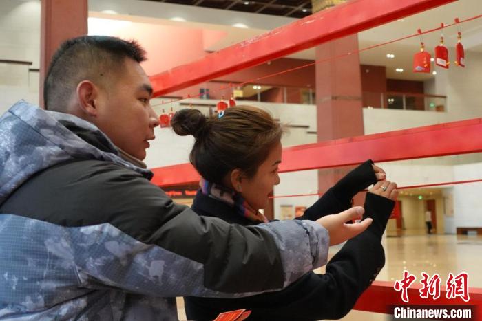 當(dāng)日上午,西藏博物館中央大廳聚集了許多參加現(xiàn)場(chǎng)活動(dòng)的游客。游客以隨機(jī)抽福袋、領(lǐng)獎(jiǎng)品的形式參與活動(dòng)。參與者紛紛表示在新年的第一天開展這樣的活動(dòng)很有意義。針對(duì)元旦期間來館參觀的游客,西藏博物館還制作有館藏文物元素的主題紀(jì)念賀卡供游客留念。