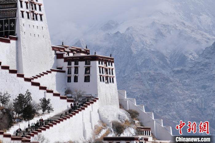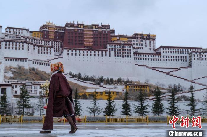 1月16日,西藏拉薩迎來2024年首場降雪,圖為民眾途經(jīng)雪后的布達拉宮廣場。江飛波 攝