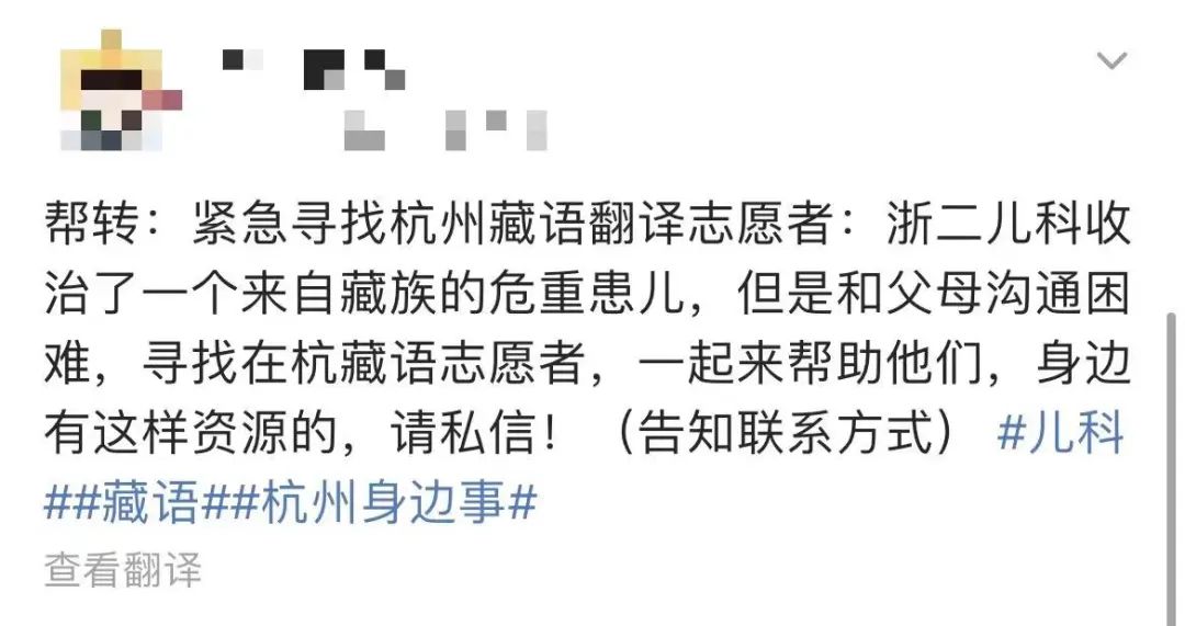 “緊急尋找杭州藏語(yǔ)翻譯志愿者……”
