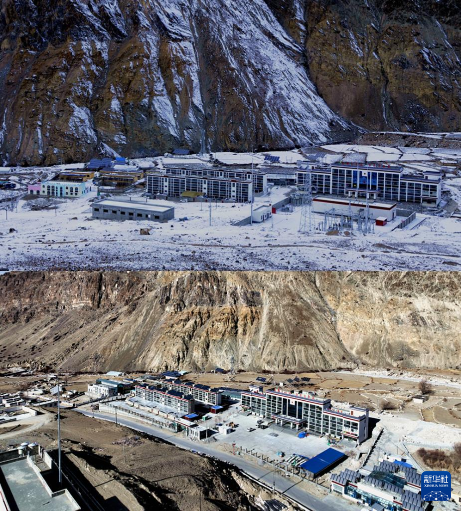 拼版照片:上圖是2019年1月8日拍攝的楚魯松杰鄉(xiāng)政府(新華社記者陳尚才攝);下圖是2024年1月13日拍攝的楚魯松杰鄉(xiāng)政府(新華社記者陳澤鵬攝)。