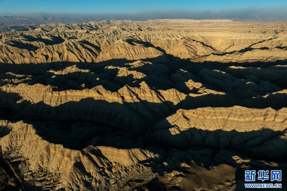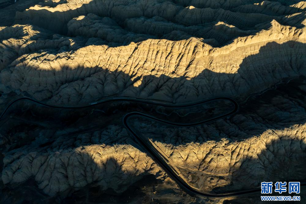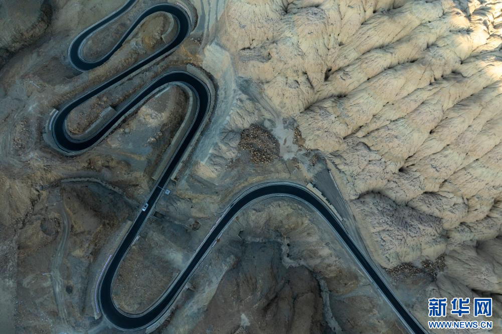 1月31日拍攝的札達土林和公路(無人機照片)。新華網(wǎng) 旦增努布 攝