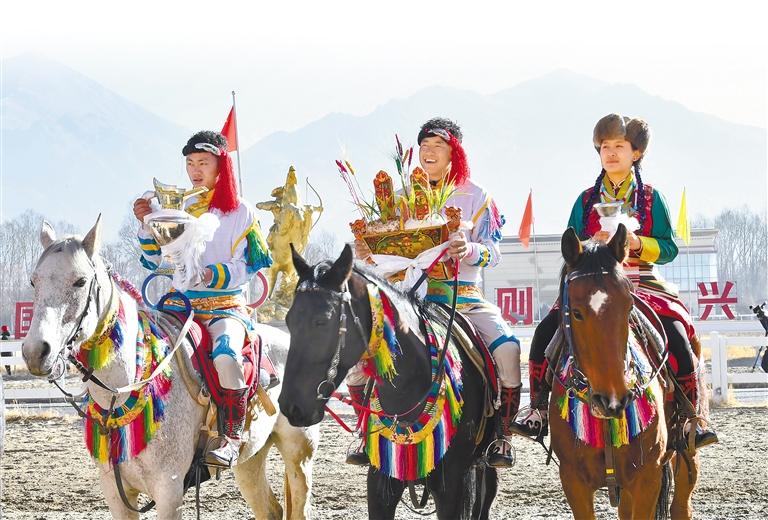 2月12日藏歷新年初三,主題為“體育大拜年,健康迎新春”的民族傳統(tǒng)馬術(shù)表演暨民族賽馬活動(dòng)在拉薩賽馬場(chǎng)舉行。