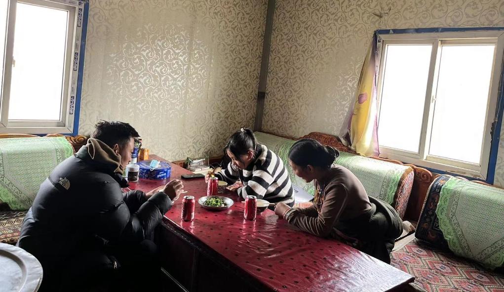 42歲的扎多是那曲市班戈縣青龍鄉(xiāng)牧民。班戈縣地處羌塘草原,擁有大片天然草場,牧業(yè)一直是當(dāng)?shù)匕傩盏纳嬷尽?/p>
