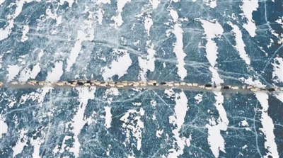 湛藍(lán)色的冰面上,牧羊人吹著口哨,驅(qū)趕著羊群,朝著遠(yuǎn)方前進(jìn),留下一串串蹄聲和羊鞭揮舞聲。