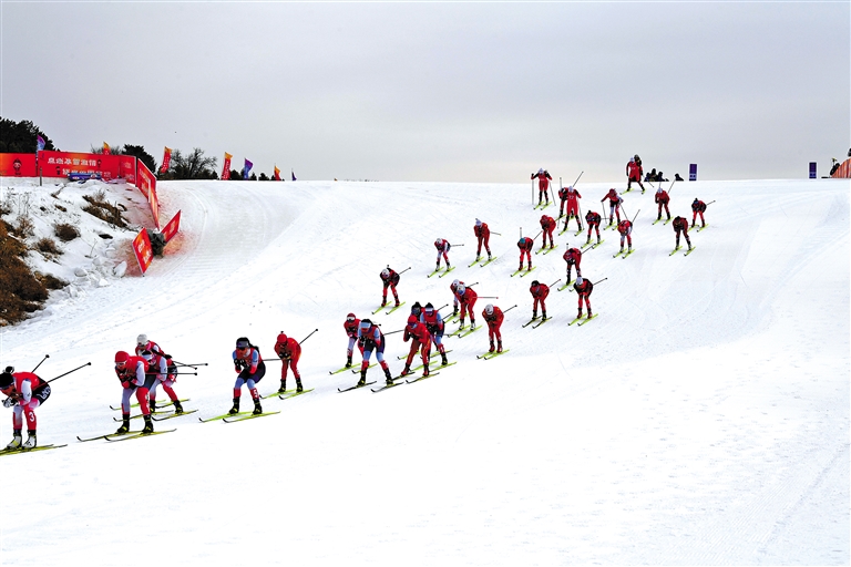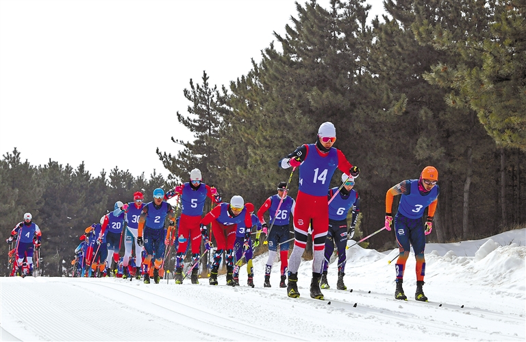 2月1日,第十四屆全國(guó)冬季運(yùn)動(dòng)會(huì)滑雪登山項(xiàng)目公開(kāi)組混合接力比賽在內(nèi)蒙古扎蘭屯市金龍山滑雪場(chǎng)舉行。